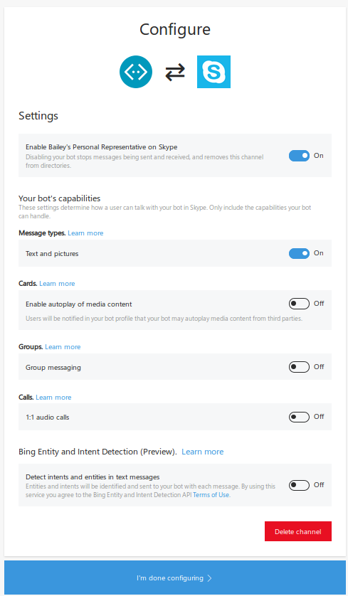 To give you an idea of how difficult it is to configure a channel lets look at the skype configuration.